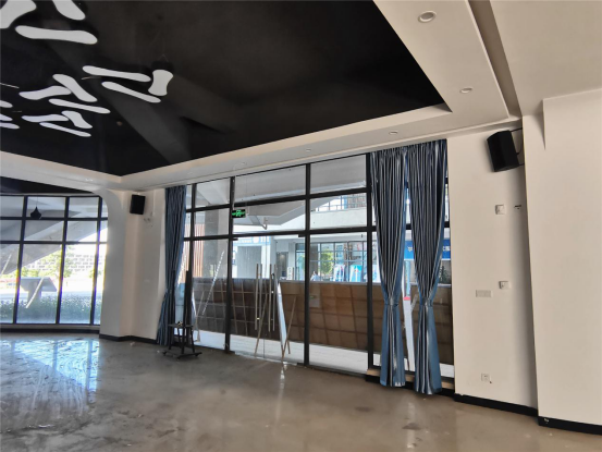 左右两侧墙面各壁挂两只AT-08辅助音箱,使整个大厅的声压级更加均匀,达到声音萦绕全场的效果,在场人员听音也更显自然。