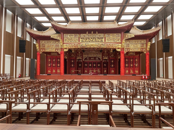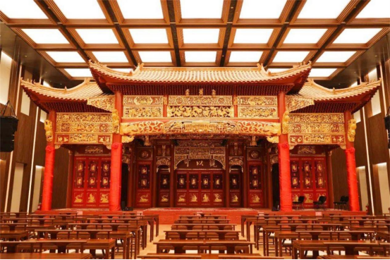 >>>多功能厅内中国传统风格的戏台及观众席