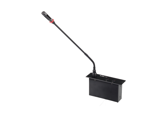 智能数字化设计控制电路,功耗低嵌入式设计,带发言指示灯环指示;锌合金压铸外壳,桌面式结构,外观精美;铝合金设计,美观、时尚、经久耐用高保真单指向性电容咪芯,声音还原、清晰度高、噪音小;优良抗手机干扰能力。315度全向弯折不锈钢软管单元自带2.1米单出8p连线,配备T3M连接线,安装简便,提高安装的效率会议单元支持热插拔功能,自带2.1米8P连接线;手拉手连接模式,安装简便,操作灵活类型:电容式指向性:单一指向性频率响应:40Hz-16KHz灵敏度:-43±2dB@1KHz输入电压:DC 9V(主机供电) 最小输入阻抗 :1KΩ信噪比:90dB(A)输出插座:2.0M 8P端子座 输入导线:2.0m 8P屏蔽线附件:防风海绵、2.0m 8PT3M屏蔽线开孔尺寸:(W×D):140 mm×40mm