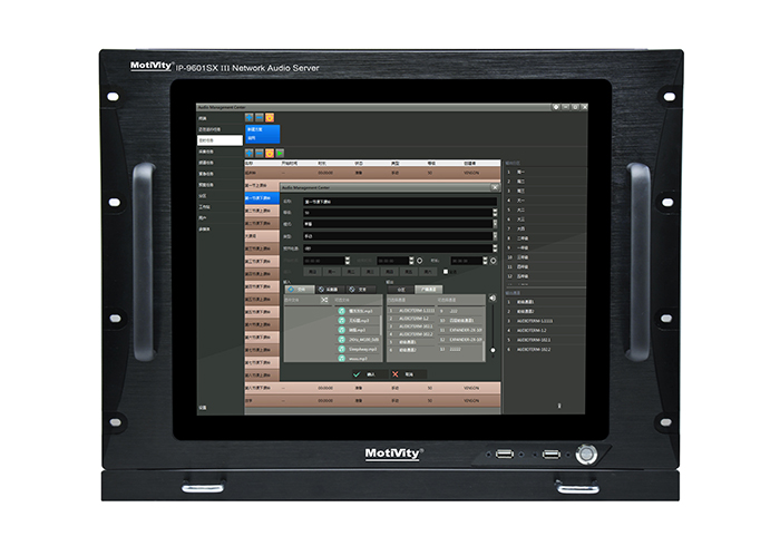 网络音频服务器是网络音频广播系统的核心,它实时监测整个网络广播系统所有终端和外部设备的工作状态,实时响应所有终端的各类服务请求,对整个广播系统进行实时有效的管理;