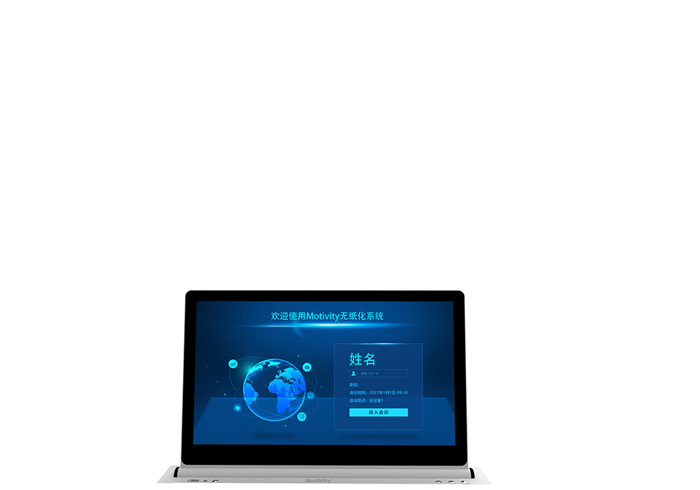 具有铭牌显示功能、会议标语功能、会议信息功能、会议议程功能、会议议题功能:按会议进程及权限显示后台推送的会议议题,议题内文件支持word\ppt\excel等办公文件、会议签到、投票表决、交互式电子白板、信息交流功能、会议呼叫服务、接收后台软件推送的通知信息等会议功能;