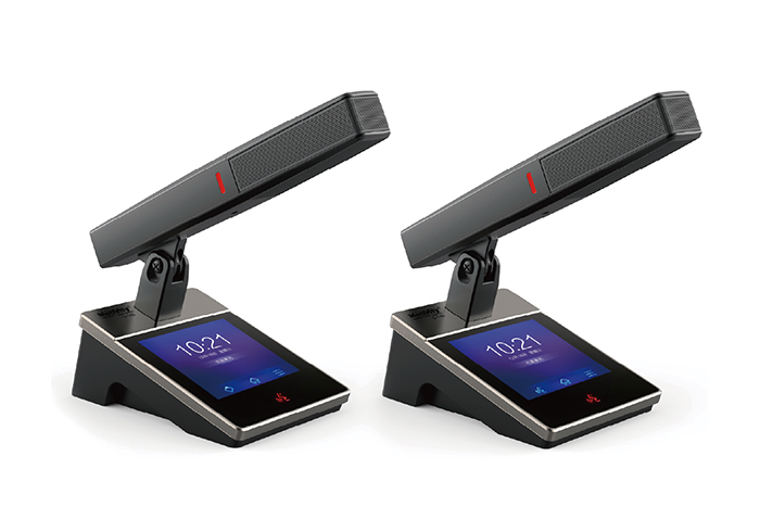 技术特点:金属面板设计,整体高档庄重,符合现代审美标准单元为无源设备,由系统主机供电,输入电压为24V,属安全范围8芯线接口的单元采用T型8芯连线,线材采用全线铝箔、水线屏蔽,大大降低强电磁波对线材的干扰专业高保真电容咪芯,拾音灵敏、语音清晰,带宽达到20Hz~20KHz采用压铸式铝合金多菱角方形麦克风,通过固定接头连接话筒底座,可调俯仰角度,整体稳重,高档大气内置完全隔离的主麦克风及备份麦克风,两路音频信号同时输出,主麦克风所在系统出现故障时,不影响备份麦克风输出,保证会议的顺利进行(选配)内置高性能DSP处理器对音频进行5段均衡处理、降噪处理,使声音清晰透彻采用防干扰电路设计,可防止手机等电子产品的干扰话筒头部带三个LED显示灯,用于显示发言状态话筒开关和触摸屏采用一体触摸镜面,无机械按键声,寿命长,并具防