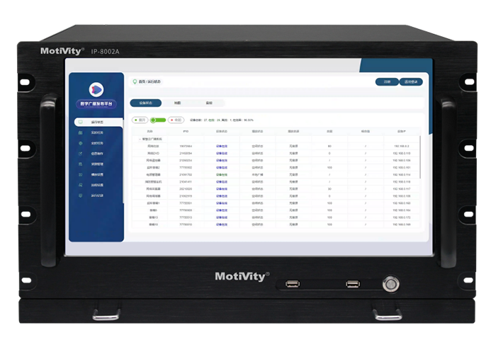 网络广播系统的核心,实现各终端的管理、状态监测、终端配置、数据处理及管理;工业级机柜式机箱设计,有较高的防磁、防尘、防冲击的能力;具备强大的兼容性,兼容WINDOWS/LUNIX系统,支持7*24小时不间断运行,防震抗干扰,耐高低温,适应各种环境应用;